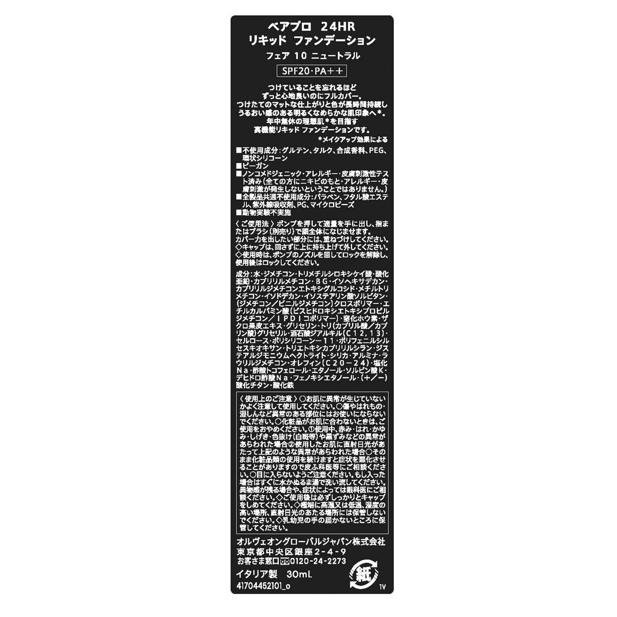 Le BAREPRO 24HR WEAR de bareMinerals est un set de maquillage comprenant un fond de teint liquide mat conçu pour une tenue longue durée et un fini naturel. Sa formule contient 30 ml de produit, idéale pour une application uniforme tout au long de la journée, et est enrichie en protection solaire SPF 20, qui aide à protéger la peau des dommages causés par les rayons UVA et UVB. Ce fond de teint a une texture liquide facilitant l’étalement et offre une couvrance modulable avec un fini mat, adapté à ceux qui préfèrent un aspect sans brillance et durable. Sa composition végane et sans parfum garantit une option respectueuse des peaux sensibles et conforme à des principes éthiques de production. Conçu pour un public unisex, ce produit est présenté dans la teinte Light 27 Cool, qui apporte un fini frais et naturel adapté aux peaux claires à sous-tons froids. Fabriqué aux États-Unis, ce set répond aux attentes de ceux qui recherchent un maquillage pratique, durable et protecteur pour le visage. Le BAREPRO est une solution complète pour ceux qui valorisent un maquillage professionnel de qualité, alliant esthétique et soin de la peau.