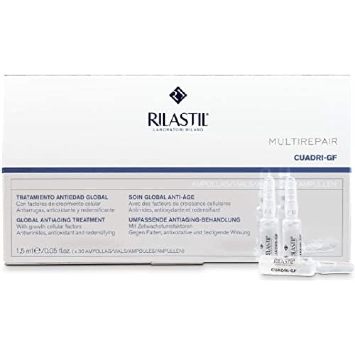 Ampoules Rilastil Cuadri-GF Anti-âge (30 x 1,5 ml) est un produit de qualité conçu pour les personnes exigeantes qui prennent soin de leur image et recherchent les meilleurs cosmétiques pour mettre en valeur leur beauté. Si vous en faites partie, les produits 100% originaux Rilastil sont faits pour vous.