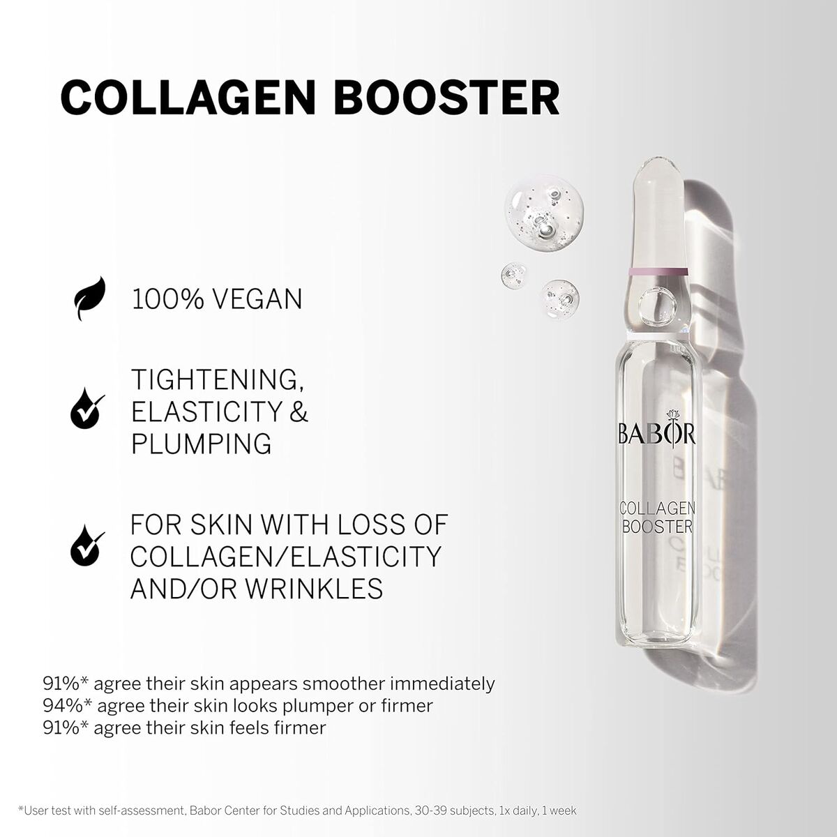 Le Collagen Booster de Babor est un traitement spécifique conçu pour stimuler la production naturelle de collagène dans la peau, spécialement formulé pour les peaux sèches. Ce produit se présente en format compact de 2 ml, idéal pour une application précise et contrôlée. Sa composition inclut des conservateurs tels que le potassium sorbate, le sodium benzoate, l’hydroxyde de sodium et le lactate de sodium, garantissant la stabilité et la sécurité du produit tout en maintenant son efficacité. De plus, sa formule convient aussi bien aux hommes qu’aux femmes, étant adaptée à un public unisex et suivant une philosophie de soin respectueuse, puisqu’elle est végane. Fabriqué en Allemagne, il répond à des normes élevées de qualité et de contrôle, assurant un traitement fiable pour améliorer visiblement l’élasticité et la fermeté des peaux sèches. La texture et la concentration du produit sont pensées pour optimiser l’hydratation et favoriser une peau plus lisse, contribuant à lutter contre les signes du vieillissement cutané liés à la perte de collagène. Ce concentré est adapté pour être intégré dans des routines de soin du visage spécifiques visant la revitalisation et le soutien structurel du tissu dermique. En résumé, le Collagen Booster de Babor représente un complément efficace et scientifique pour les soins anti-âge, destiné à améliorer la qualité et l’apparence des peaux sèches sur une base naturelle et responsable.